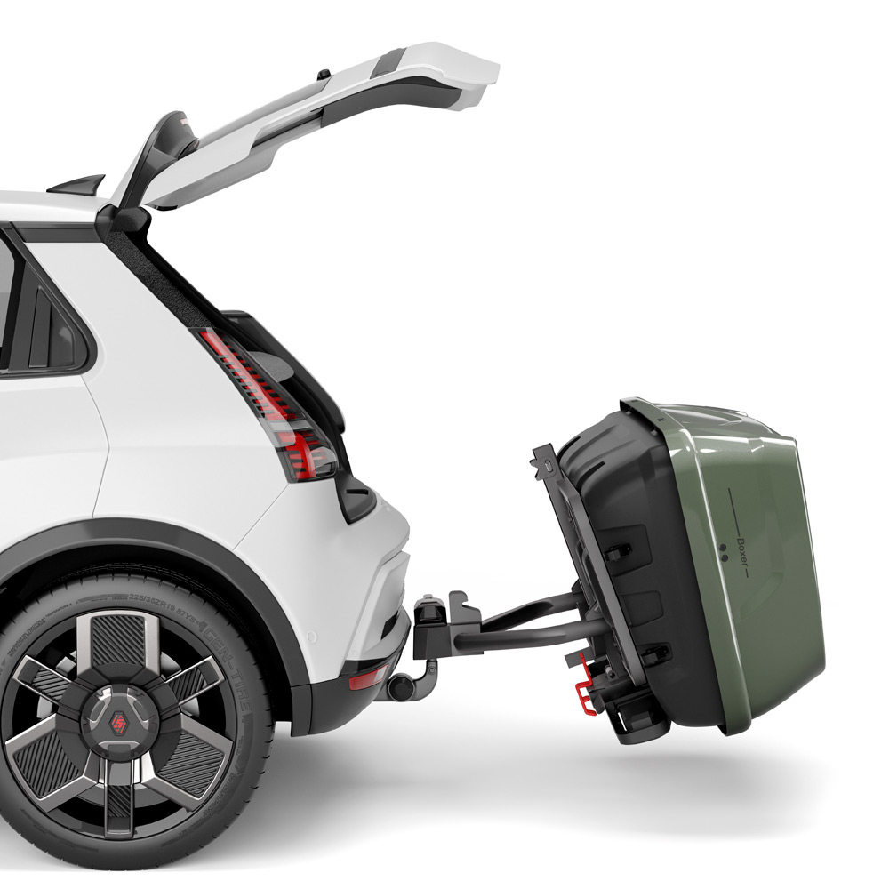 Платформа, на которую устанавливается бокс, снабжена функцией наклона (угол 760) для беспрепятственного доступа к багажнику автомобиля.