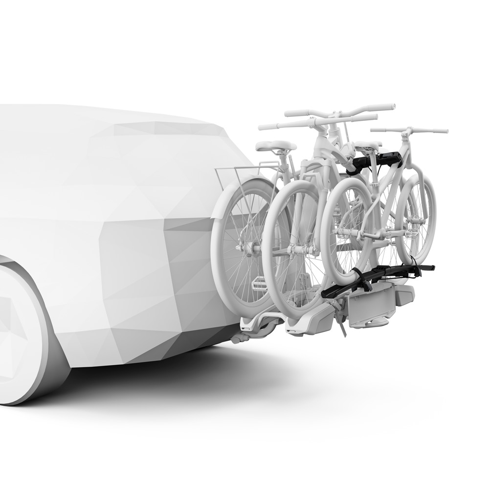Беспрепятственный доступ к багажнику с установленными велосипедами осуществляется благодаря интеллектуальной системе наклона с помощью ножной педали.